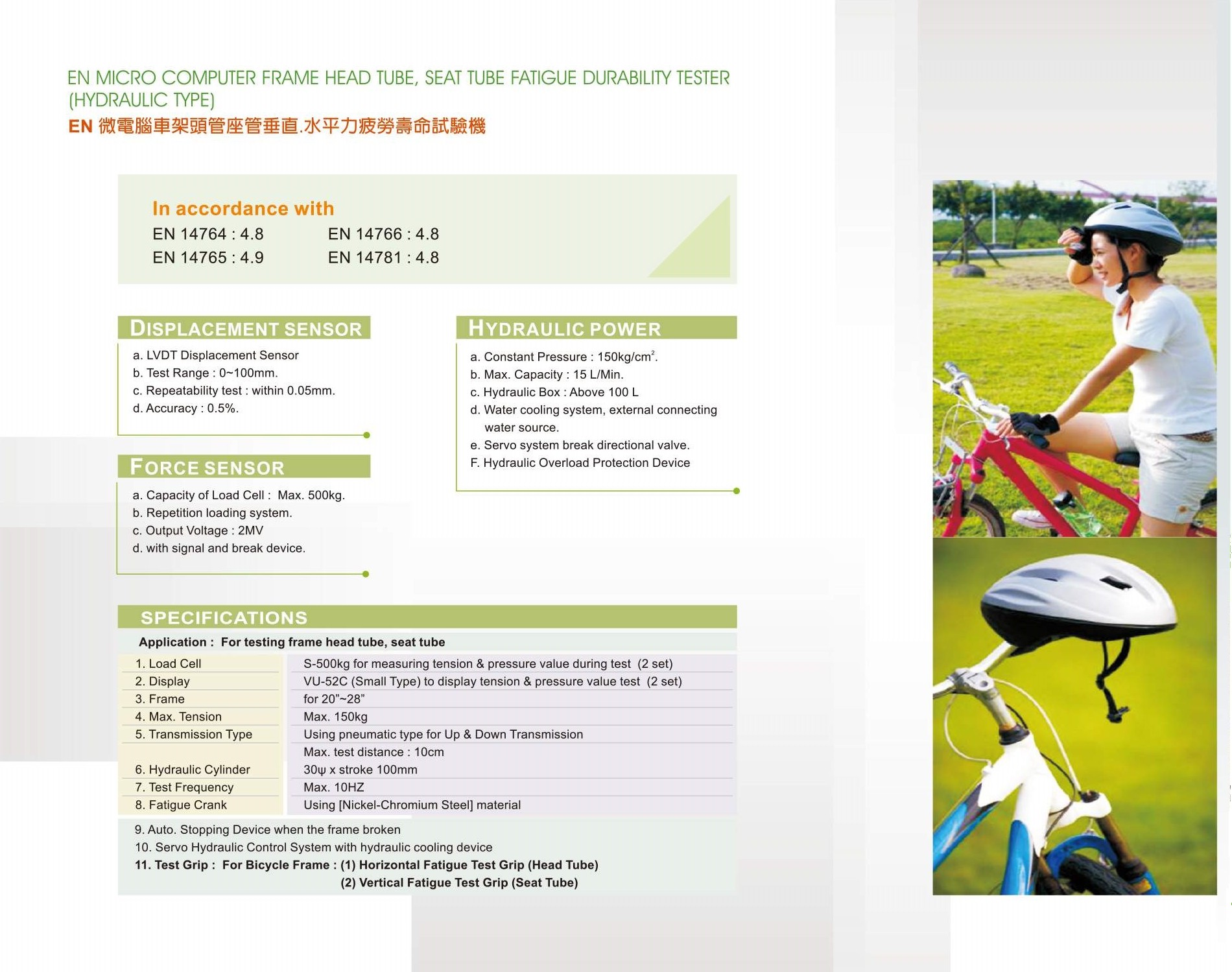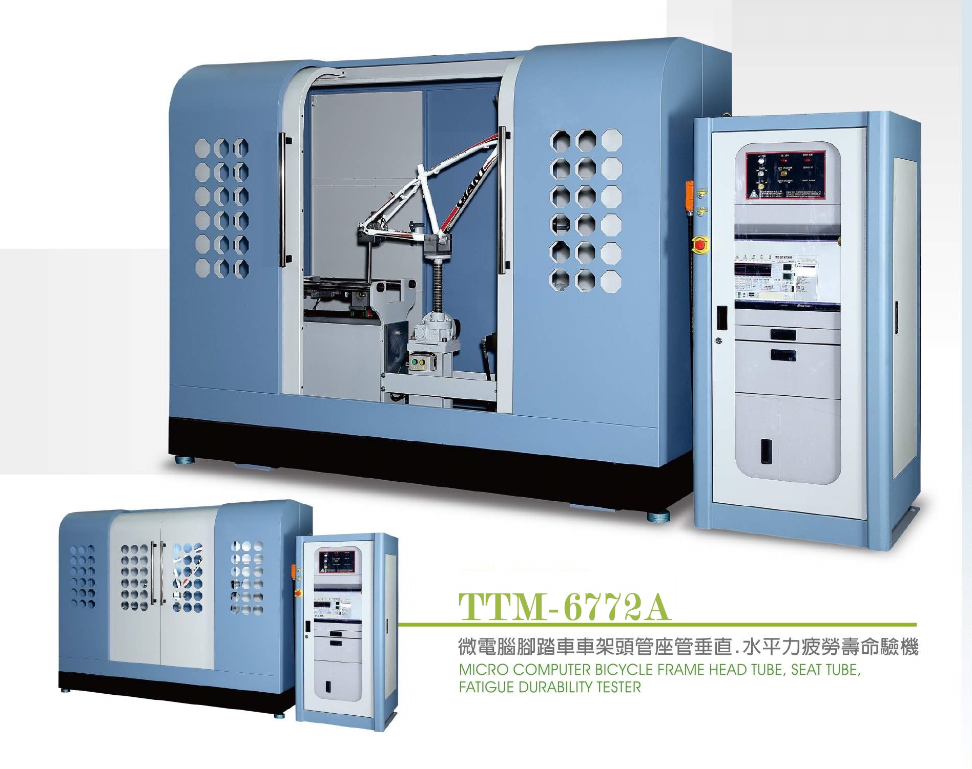 TTM-6772A Micro computer bicycle frame head tube,seat tube,fatigue durability tester / 微電腦腳踏車車架頭管座管垂直.水平力疲勞壽命試驗機