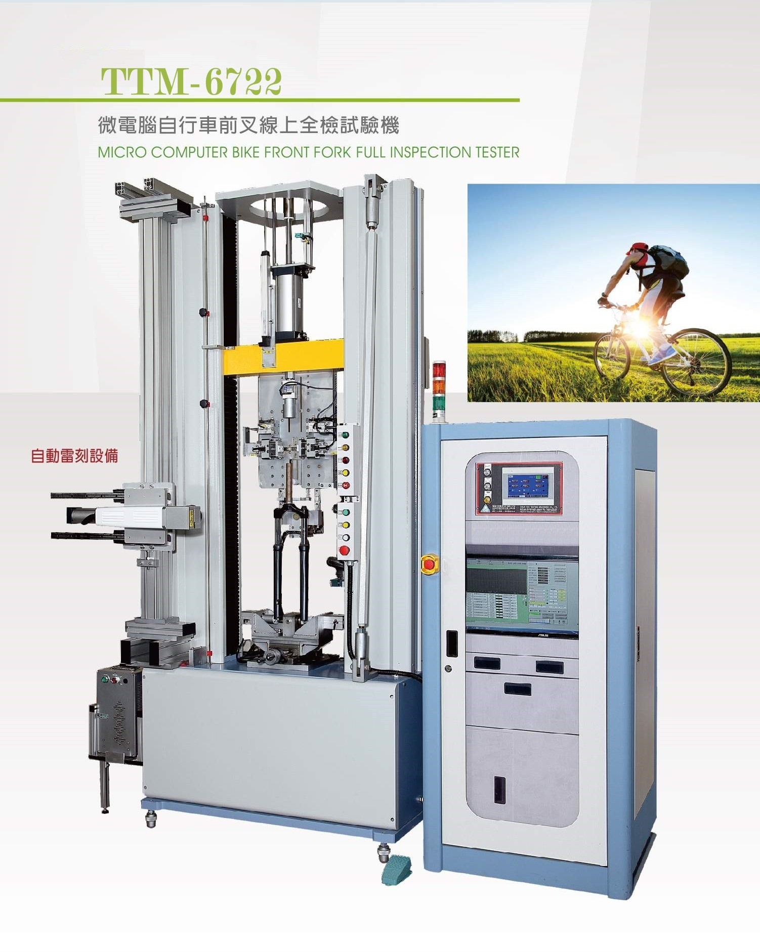 TTM-6722 Micro computer bike front fork full inspection tester / 微電腦自行車前叉線上全檢試驗機